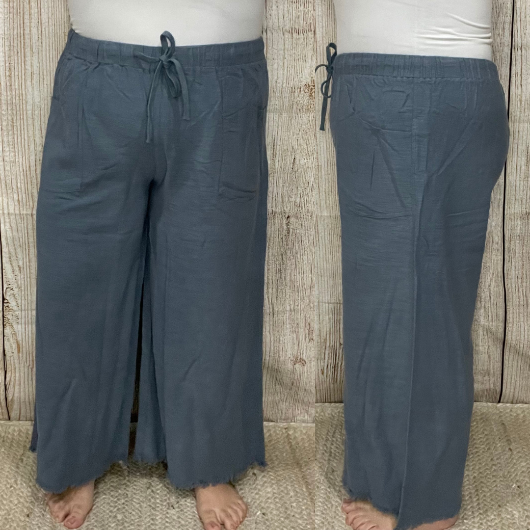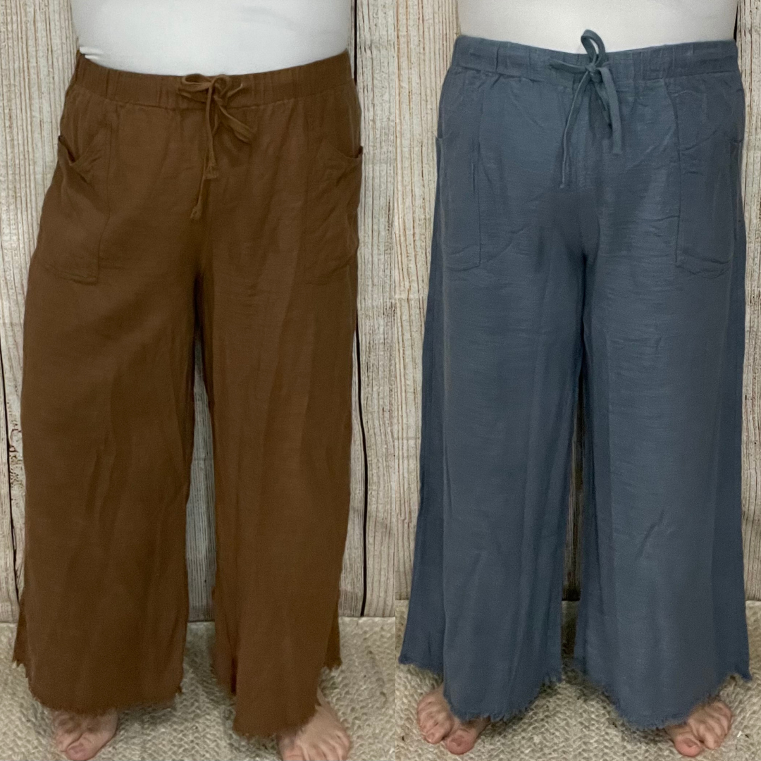 Wide Leg Linen Ankle Pants
