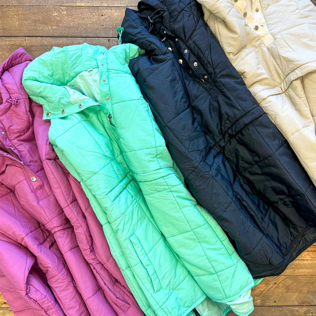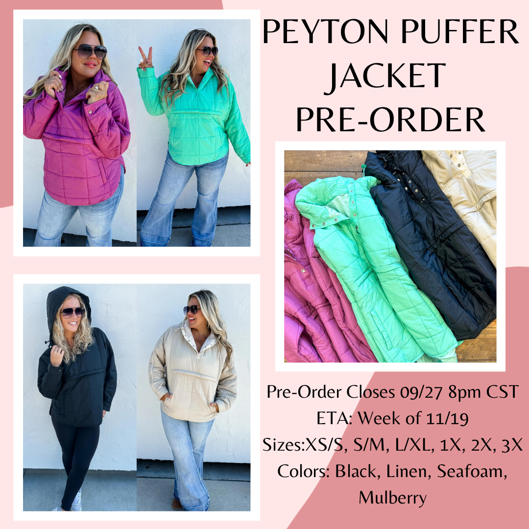 Stay warm and stylish this winter with the Peyton Puffer Jacket. Features a quilted pattern style with detail to all the trims!